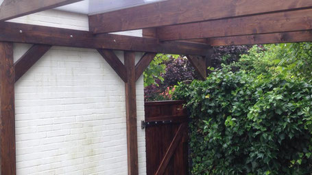 Das Dach besteht aus Doppelstegplatten in Aluminiumrahmen.
